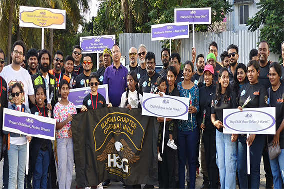 Promoting Child Safety: AIMS Hosts Bike Rally with Harley-Davidson Marina Chapter; Shri Santhosh Kumar, IPS, Graces the Event as Chief Guest